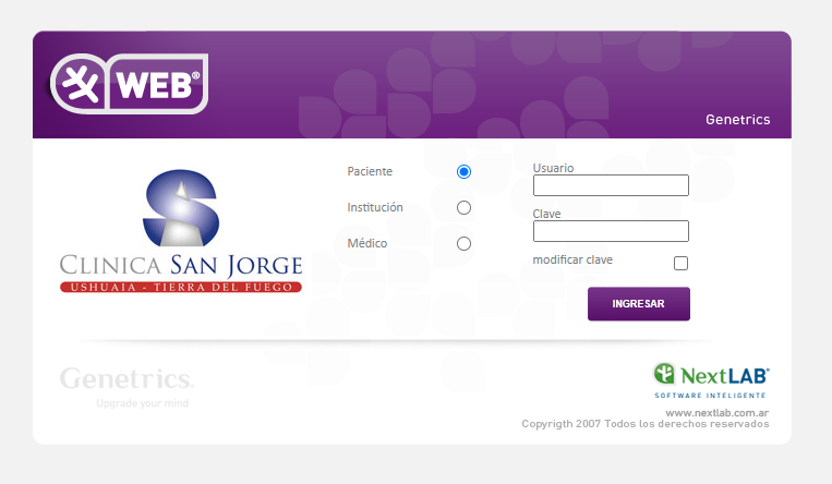 El mes de Agosto de 2012 se instalo el modulo de Gestion NextLAB PRO y el modulo WEB